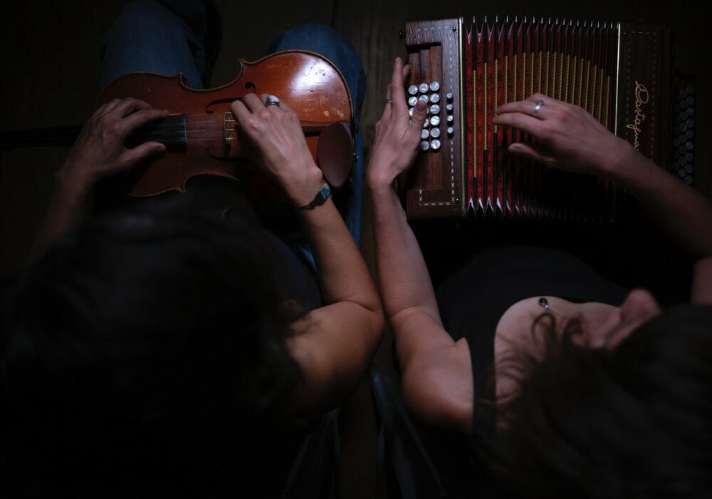 Le violon, l’alto et l’accordéon diatonique accompagnent les jolies voix des deux artistes qui vous invitent à découvrir leur perception de la nuit. Des chants de résistance circulant dans la clandestinité à ceux des amours interdits, des berceuses qui éloignent les esprits aux musiques de transe, elles vous transportent du crépuscule jusqu’à l’aube. Plongez dans ce spectacle intime et intense sous forme de veillée intimiste.